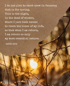As we cycle through the seasons, the dark night time of the year is meant to correspond with our daily cycle and allow us a time to slow down and reflect. Though we may wish to change some habits and allow for more self care, let it be with great intention of rest and renewal in preparation for the springtime energy of life bursting forth joyfully. Give yourself time to plan and dream as much as possible. Though daily routines to maintain our lives are necessary, and there is always work that must be done, what small shifts may be possible to allow for the nourishment you are seeking? What needs to be pared back in your life, and what habits need to die?