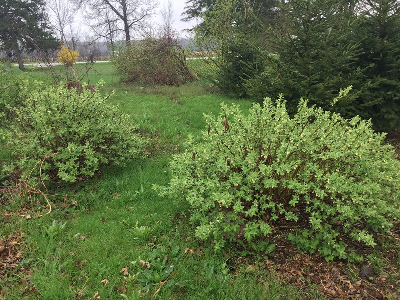 Honeyberry bushes in the food forest. Photo taken 5/3/22 by Jean.