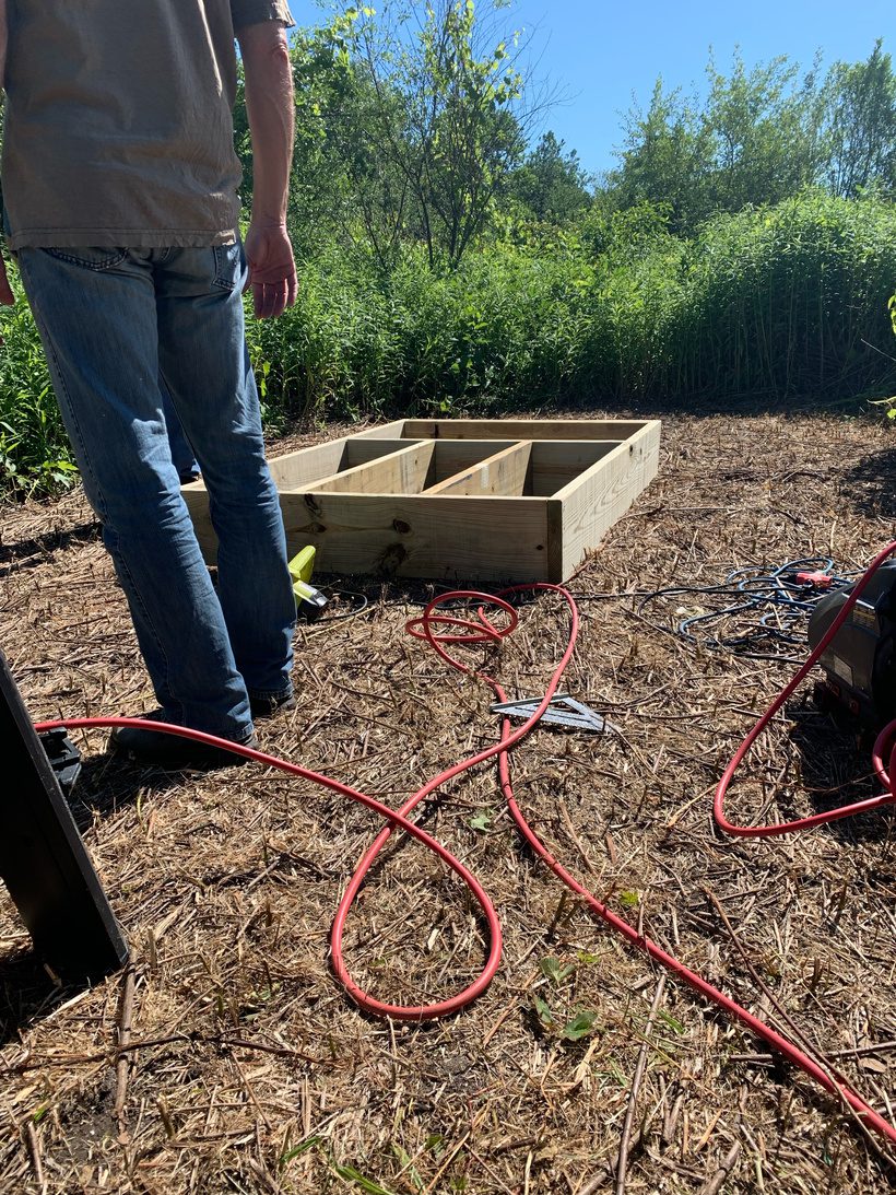 This is how far we got. We will be adding the roof, siding, door, a ramp, and screening for ventilation around the top.