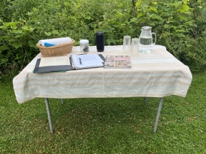 I wanted to show a few pictures from my last meetup that I had set up for someone who RSVPd but didn’t show up. This is not at all to chastise anyone… only to show that each meetup is curated with love and care, and time and effort to make it as wonderful as possible. As you can see from the pictures, I went ahead and enjoyed myself with making the art. And my family came out and joined me around the fire where we had a lovely time.