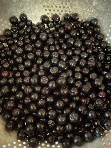 At our meetup this past Saturday I baked a cake made with aronia berries from our farm. I thought I’d share the recipe here with you all. Aronias have even more antioxidants than blueberries! They are super easy to grow if you have a little bit of room in your back yard for a large shrub. They are also native to our region.