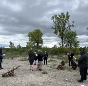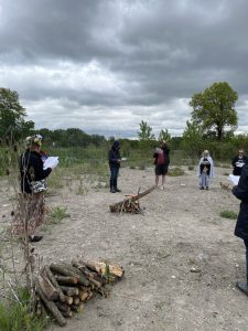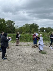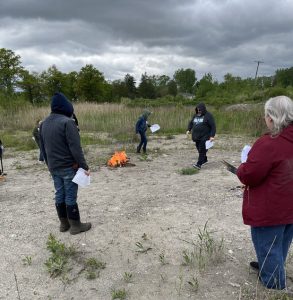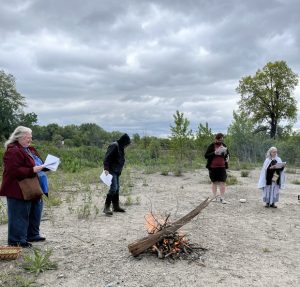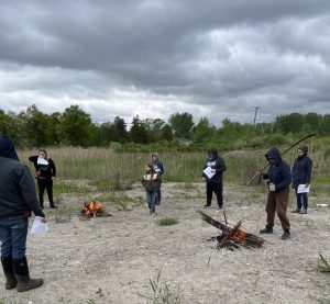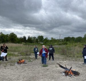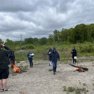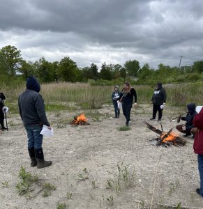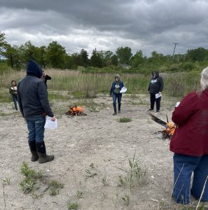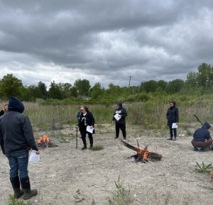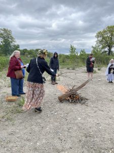 Fires are lit and participants are adding the nine sacred woods as we sing