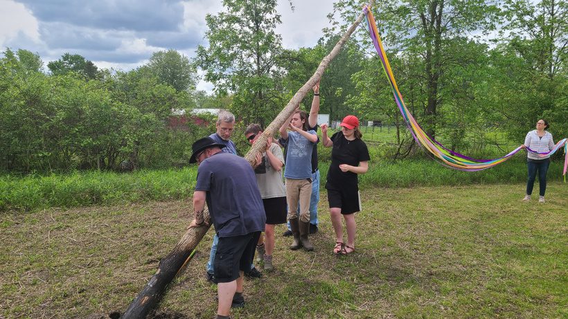 Our wonderful gathering today started with an excellent talk on Working with the Land Spirits by Sarenth Odinsson, and concluded with a Maypole Dance and potluck/bonfire.