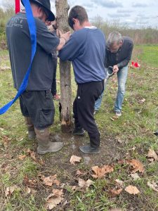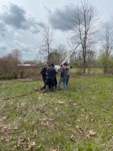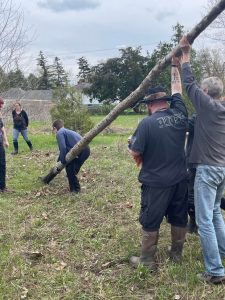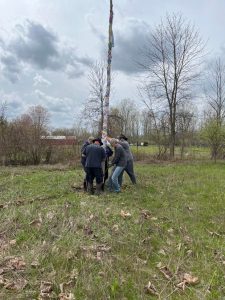 getting ready to take down the previous year’s maypole