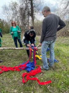 We did have a bit of a snag for the first part of the dance when the ribbons got all tangled up. We had to stop and figure out how to make it work so we could finish the dance without it being a big mess. But Dan directed us in fixing the problem, and we were then able to finish with the rest of the ribbons being woven nicely onto the pole. Comments were made on how this was a great metaphor for how sometimes when working as a group things can get messy, but if we take the time to problem solve, then everyone can come together and create something beautiful!