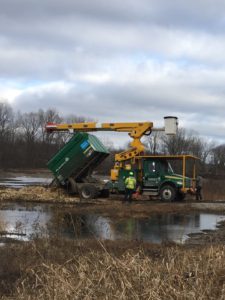The wood mulch we’ve been waiting for has finally started rolling in. This is a resource we’re able to get for free from tree service companies when they’re working in the area. We were promised some earlier this fall, but for some reason they ended up dumping it elsewhere. But now, our township is trimming the trees along all the area roads and has said they will bring the mulch from this project to us.