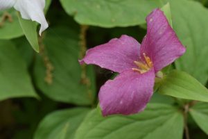 Before Trillium blossoms begin to fade, first they turn from white to pink. It can be a light pink, or a deep pink like this one.