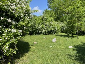 wild roses edging the stone circle