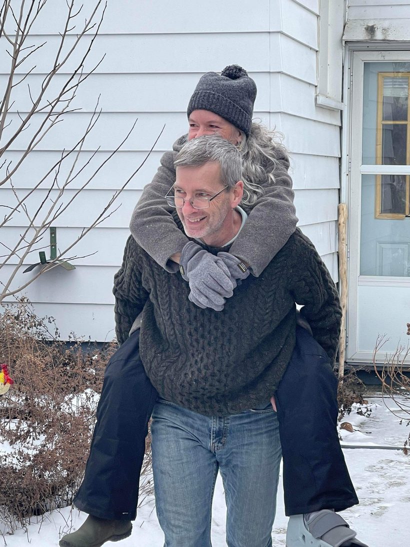 Dan carrying me out to the fire circle