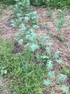 And speaking of weeds, we are also mindful regarding which ones we pull out because some of them are as much of a crop as those we are planting. For example, a couple in these photos are milkweed and chickweed. There are several parts of milkweed which are edible – the shoots, the flower buds, and the young pods. (They do however need to be boiled three times before eating them as they can be toxic otherwise.) Chickweed is a nutritious green that can be eaten on sandwiches or salads in the same way as you would use various kinds of sprouts.