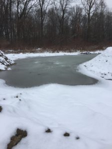 This week we had the survey done that was required by EGLE for us to continue with the work. EGLE is Michigan’s Department of Environment, Great Lakes, and Energy. Their mission is “to protect Michigan’s environment and public health by managing air, water, land, and energy resources.” It turned out that when our contractor submitted the plan for our pond to the township, they told us that we needed a survey that was approved by EGLE, since we are locating it so close to the creek. We put in right away for the survey back in October, but they were not able to get to us until this week. Happily, this hurdle has now been jumped!