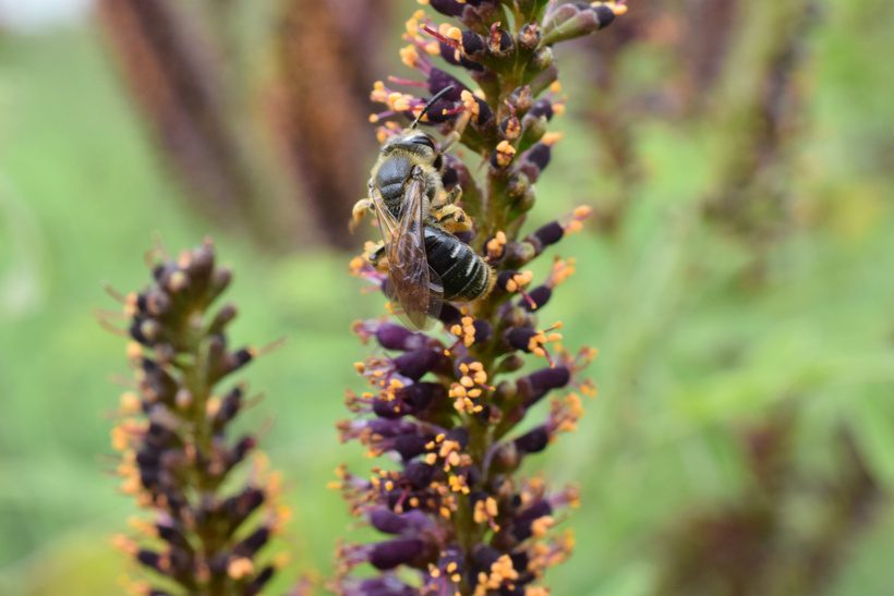 Native solitary bee (Miner Bee – genus Andrena) on False Indigo flowers – photo and ID by Brennah Cavanaugh Photography LLC