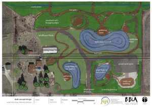We will be making some tweaks to this drawing, but it gives you a good idea of the general direction we’re heading and what we’re working toward. Within the brown gathering spaces, we plan to create areas such as a labyrinth, stone circle, fire circle, etc.