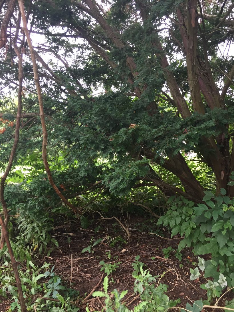 Sarenth clearing grape vines off the Yew tree