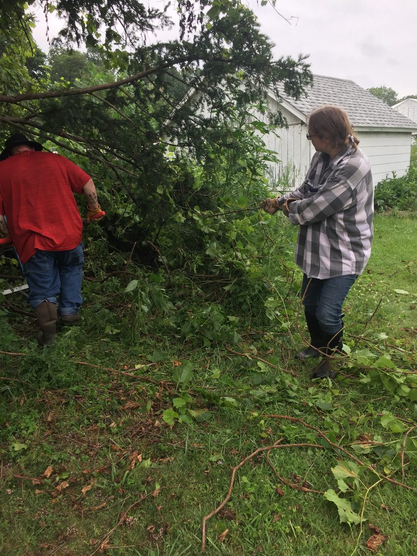 Alissa doing some trimming with Jean to clear pathways