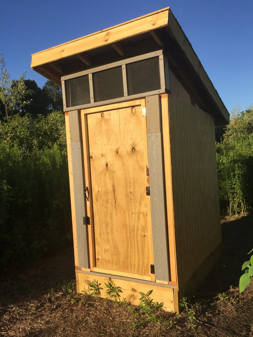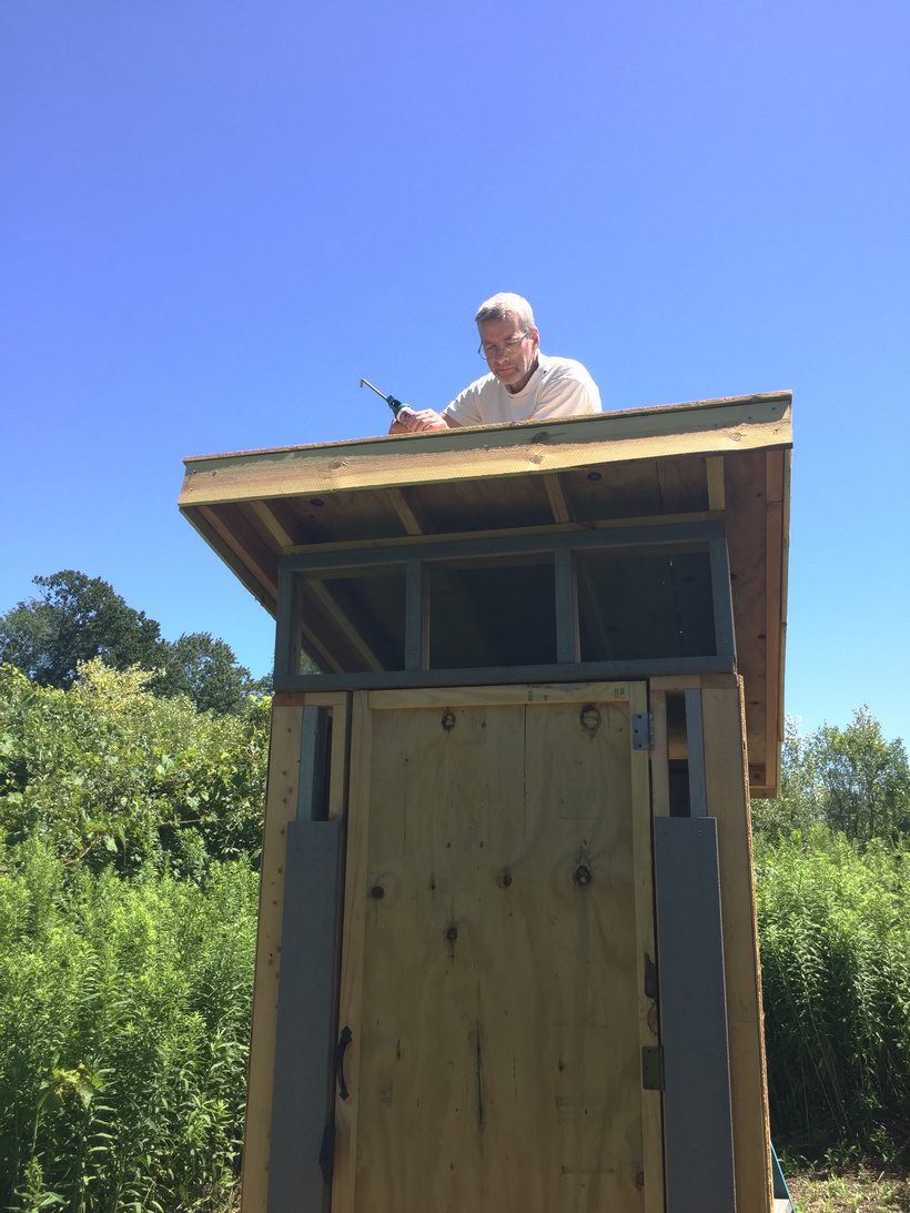 Dan working on the outhouse building – there have been lots of finishing details to make it complete.