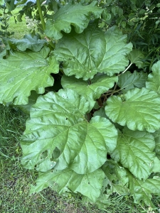 Rhubarb growing at Crossing Hedgerows