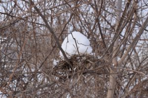 bird’s nest with a large mound of snow in it – photo by Brennah Cavanaugh