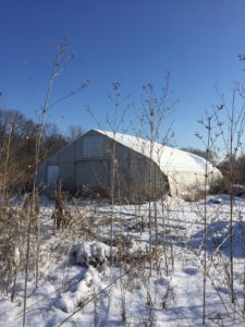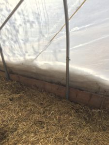The heating of the hoop house is entirely dependent on the sun. It works the same way as how your car heats up from the sun when it’s shining. However the hoop house is like a car that is made entirely of glass. Though ours is plastic, it’s a double layer of plastic with a fan that blows air between the layers, giving it that much added insulation.
