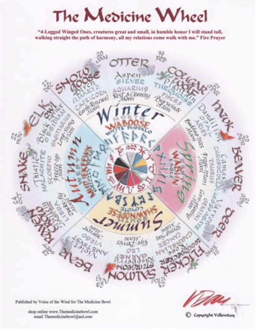 Anyway, I digress. My point is that the Wheel of the Year is imbued with deep meaning which I strive to bring to life in the ceremonies. It is found in many spiritual traditions, such as the Native American Medicine Wheel. Here is one rendition of it… of which there are MANY.