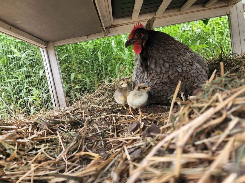 Going to see the newly hatched chicks